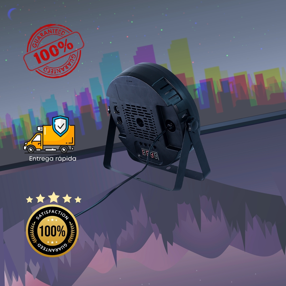 Esse equipamento foi projetado para quem busca impacto visual aliado à praticidade. Por outro lado, ele também se destaca pelo baixo consumo de energia em comparação a outros refletores da mesma categoria. Assim, você obtém economia sem perder a intensidade dos efeitos luminosos.