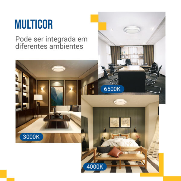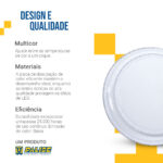 O formato de sobrepor facilita a fixação no teto, sem complicações. Além disso, acompanha acessórios adequados para instalação rápida. Por isso, resulta em uma experiência prática desde o primeiro uso.
