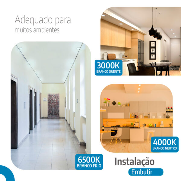 Você escolhe entre 3000 K (quente), 4000 K (neutro) ou 6500 K (frio) conforme o uso desejado. Por isso, o painel se adapta tanto a ambientes que exigem foco quanto a momentos mais relaxantes. Consequentemente, você tem versatilidade e praticidade numa única luminária.