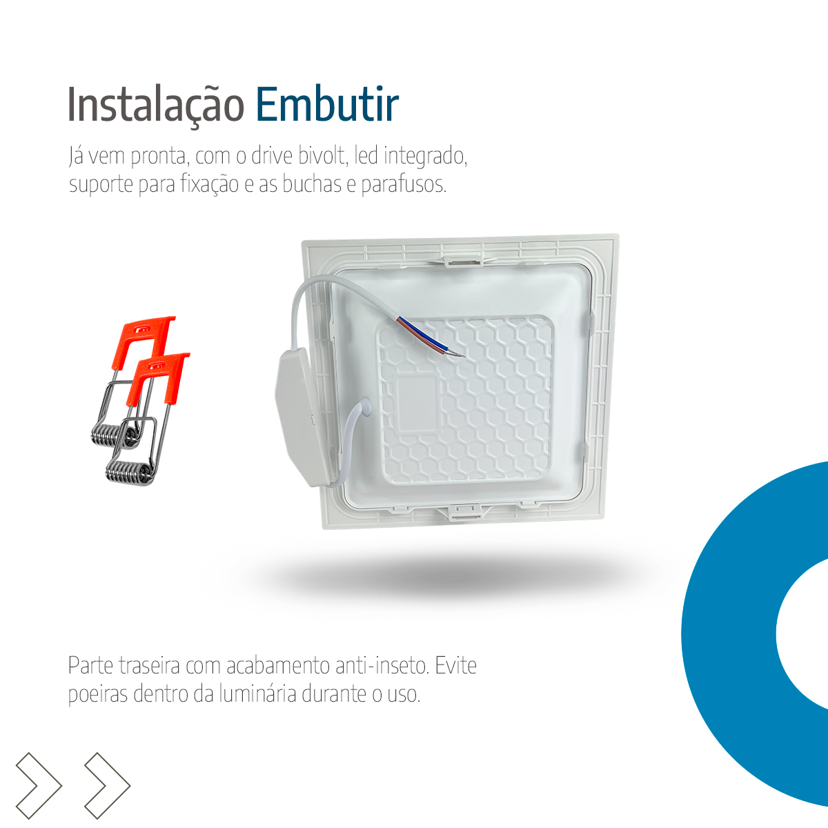 Instalação: embutir (suporte incluso)