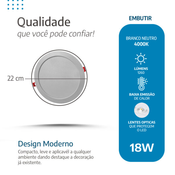 Ideal para salas, escritórios, recepções e outros espaços modernos, o painel led 22cm embutir redondo cria uma atmosfera acolhedora com economia. Em resumo, é a escolha perfeita para quem busca funcionalidade e sofisticação.