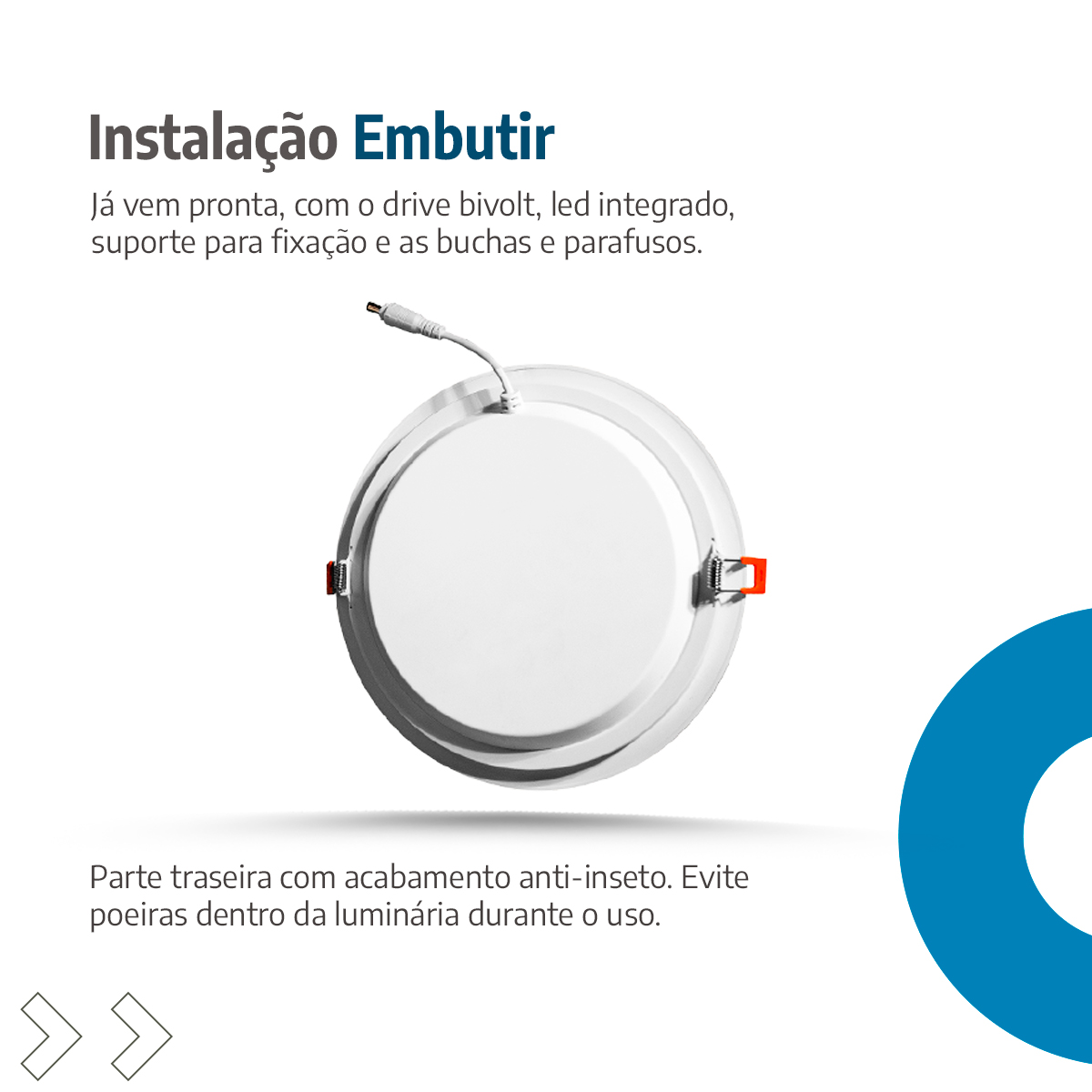 Com driver bivolt integrado e suporte para embutir incluso, a instalação é rápida e segura. Dessa forma, você adquire praticidade sem comprometer a estética do ambiente.