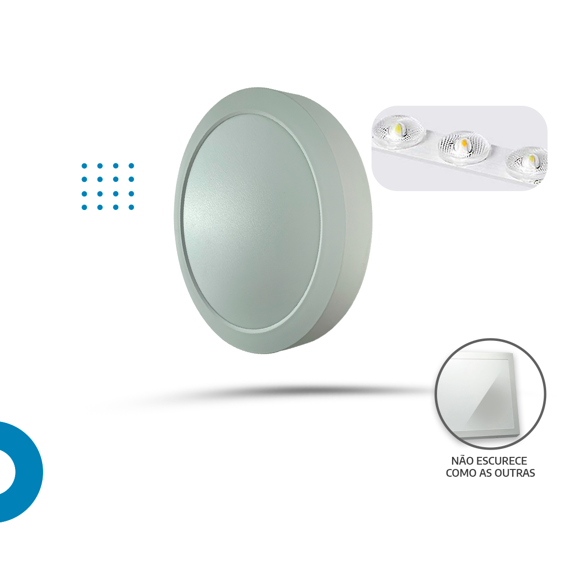 O painel led 22cm sobrepor acompanha suporte, buchas e parafusos; assim, a instalação é rápida. Por outro lado, o acabamento traseiro anti‑poeira/anti‑inseto ajuda a preservar o brilho ao longo do tempo, evitando escurecimento e amarelamento. Em resumo, é uma solução nacional com nota fiscal e garantia de 1 ano para quem busca praticidade e bom gosto.