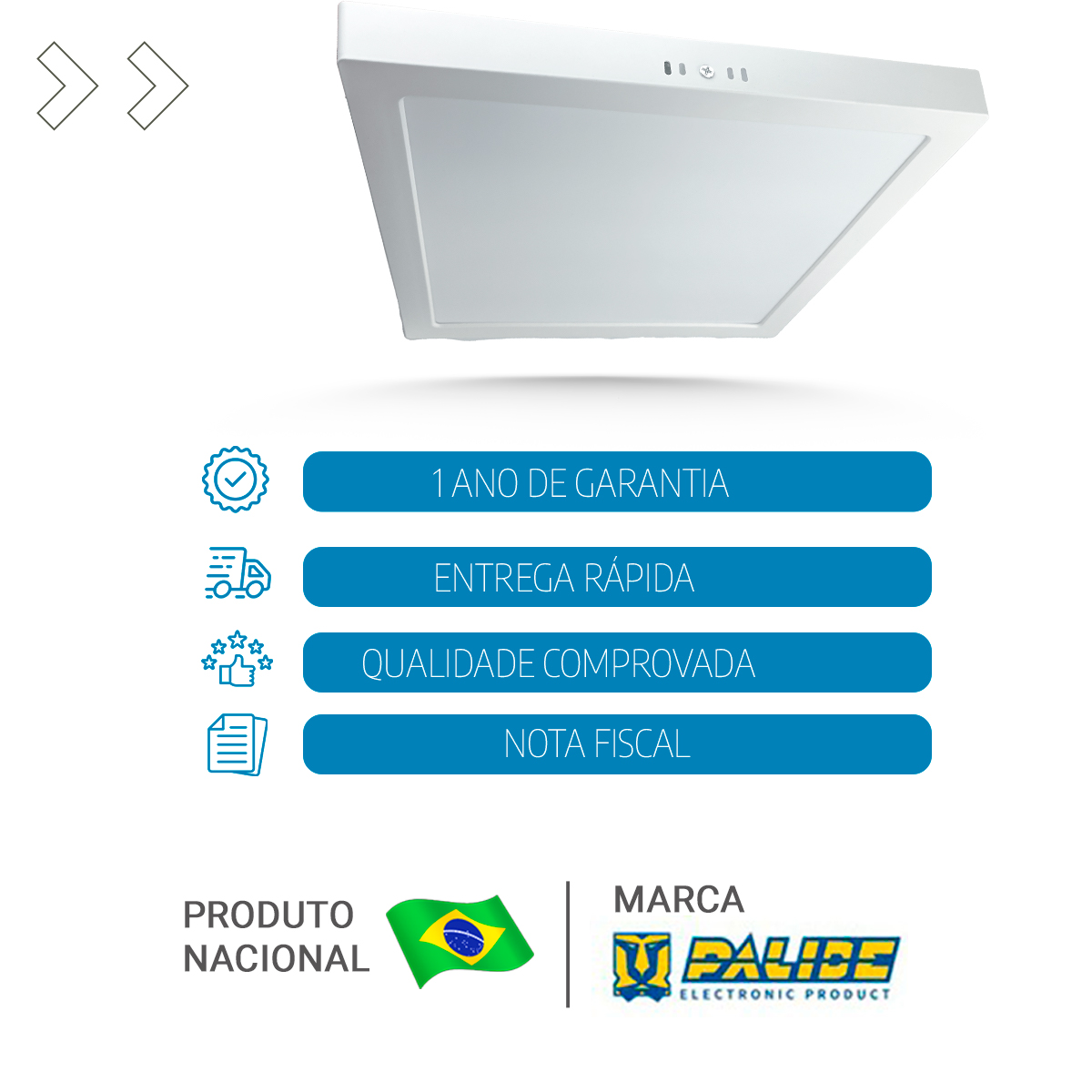 Construído no Brasil com padrão de qualidade rigoroso, este painel mantém a intensidade da luz por anos. Consequentemente, sua estrutura anti-inseto evita acúmulo de sujeira e prolonga a vida útil do produto — estimada em até 10 anos. Por fim, a Palide assegura praticidade com garantia de 1 ano e envio com nota fiscal.