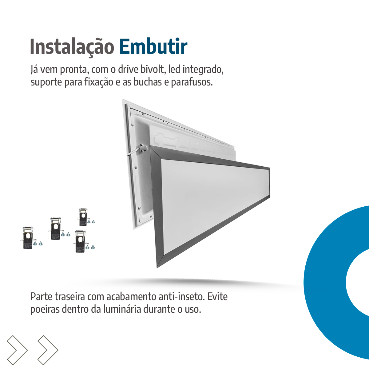 O kit já inclui driver, presilhas e parafusos, o que simplifica a instalação. Por isso, você fixa o painel com firmeza e precisão sem precisar de adaptações. Em contrapartida, modelos inferiores exigem ajustes extras, mas aqui a montagem se mantém prática e confiável.
