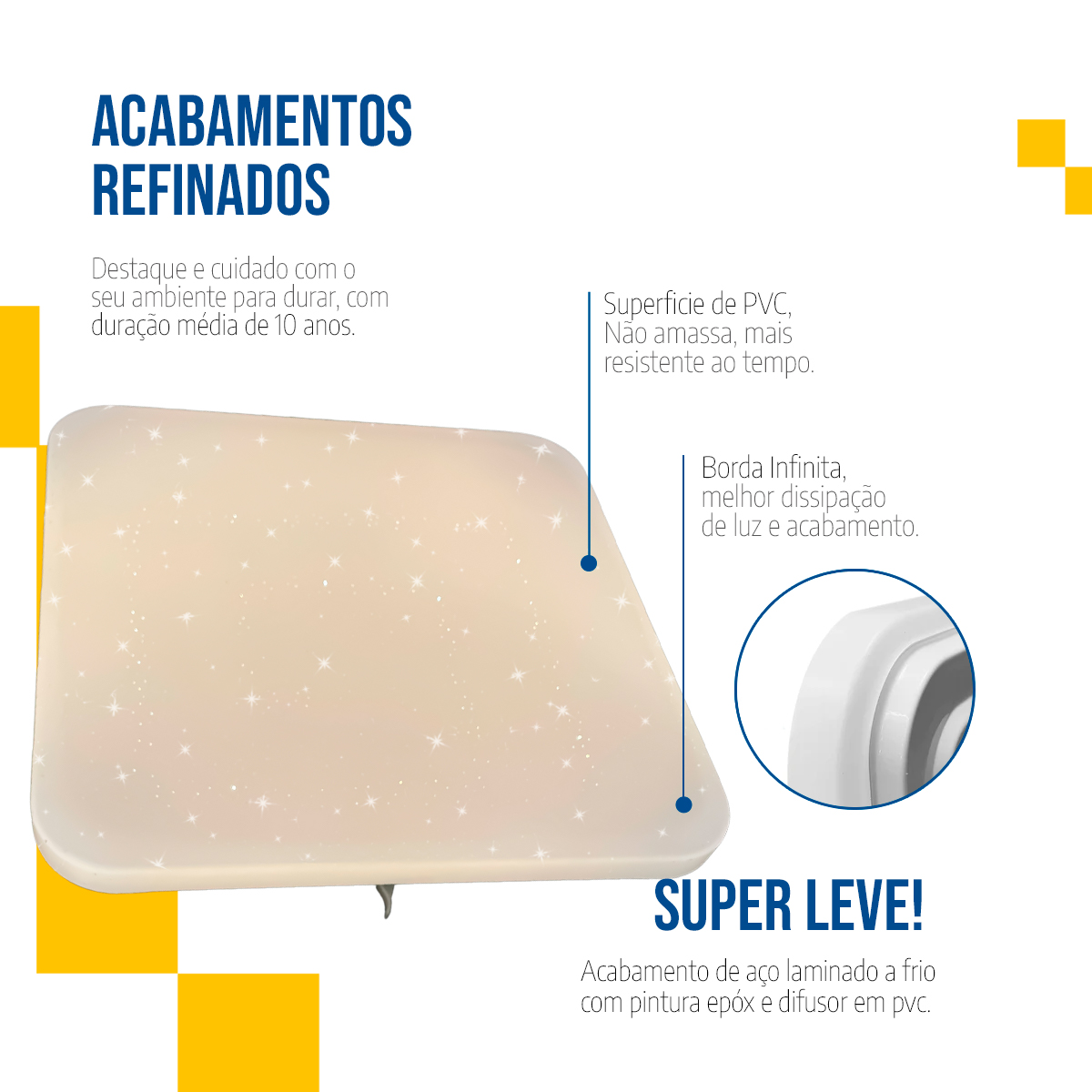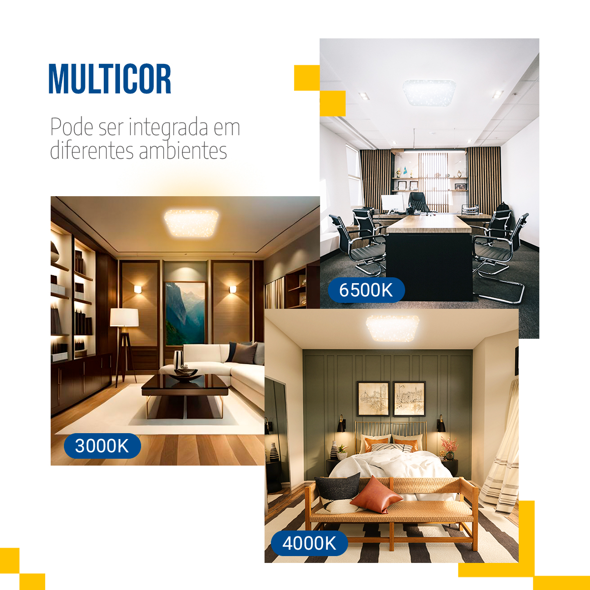 O plafon led 43×43 multicor oferece uma iluminação versátil e sofisticada, ideal para diferentes ambientes, tanto residenciais quanto corporativos. Desde o primeiro uso, garante elegância e fluidez visual. Além disso, permite escolher entre luz quente, neutra e fria conforme o momento, o que aumenta a flexibilidade de aplicação.